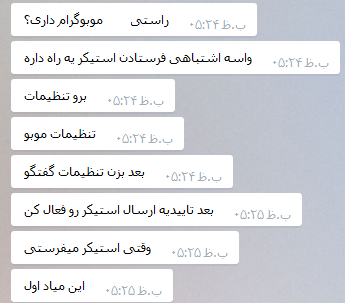ماکه فی حد ذاته تلگرامی هستیم میبینی یه استیکرظاهر خوبی داره دمیزنی هرچی ابرو داری بر باد فنا میرهدبعد باید یه ربع توضیح بدی که اشتباه کردی حالا خوبه این وسط مخاطبت دبیر دین و زندگی باشه😱